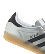O tênis adidas Gazelle se tornou um ícone de estilo. Esta versão do tênis Gazelle Indoor é feita com cabedal em couro metálico, o que o torna uma releitura do design tradicional. O solado de borracha proporciona conforto o dia todo, e o forro têxtil mantém seus pés confortáveis. Com seu design inspirado nos anos 70, ele adiciona um toque retrô a qualquer look.