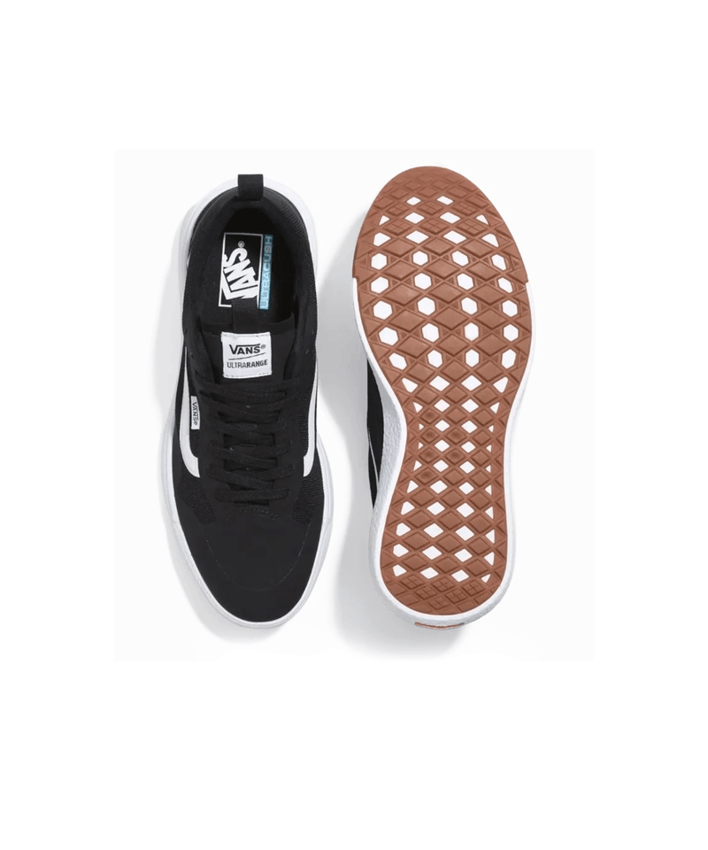 Máximo conforto e aliado de todas as rotinas. Esteja sempre pronto para o inesperado com o Tênis UltraRange Exo Black Black. Com um solado co-moldado construído em padrão tratorado em waffle - exclusividade Vans - ele maximiza a cobertura, aderência e durabilidade da borracha. A nova entressola UltraCush™ Lite traz conforto e leveza para o calce. O modelo de cano baixo possui cabedal com inspiração na silhueta do icônico Old Skool - em camurça, tecido e sintético preto - totalmente respirável, com biqueira e antepé de borracha renovado, deixando o calce no ajuste ideal. O Exo Skeleton fornece apoio integrado nos dedos e na parede lateral medial, com uma trava de calcanhar para um ajuste seguro. No calcanhar e lingueta, traz puxadores, facilitando o calce. O logo “Vans Off The Wall” é aplicado na heeltab do calcanhar. Já a original Flag vem na lateral do tênis, enquanto a assinatura “Vans Ultrarange” é aplicada na lingueta. Conforto e estilo dentro e fora das pistas.